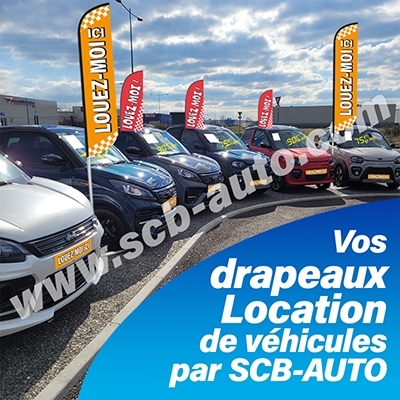 Un message demandé par nos clients et imprimé sur ce drapeau: "ici LOUEZ-MOI".